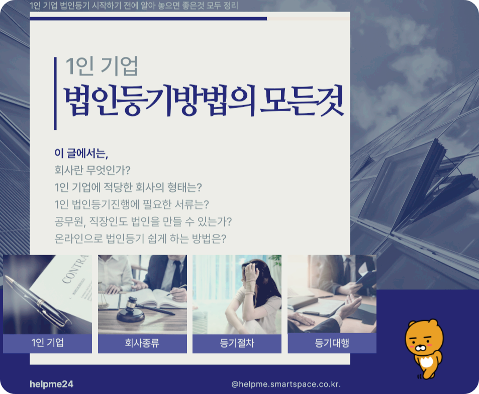 두번째. 1인기업 법인등기 진행하는 과정에서 알아야 하는 기본지식입니다